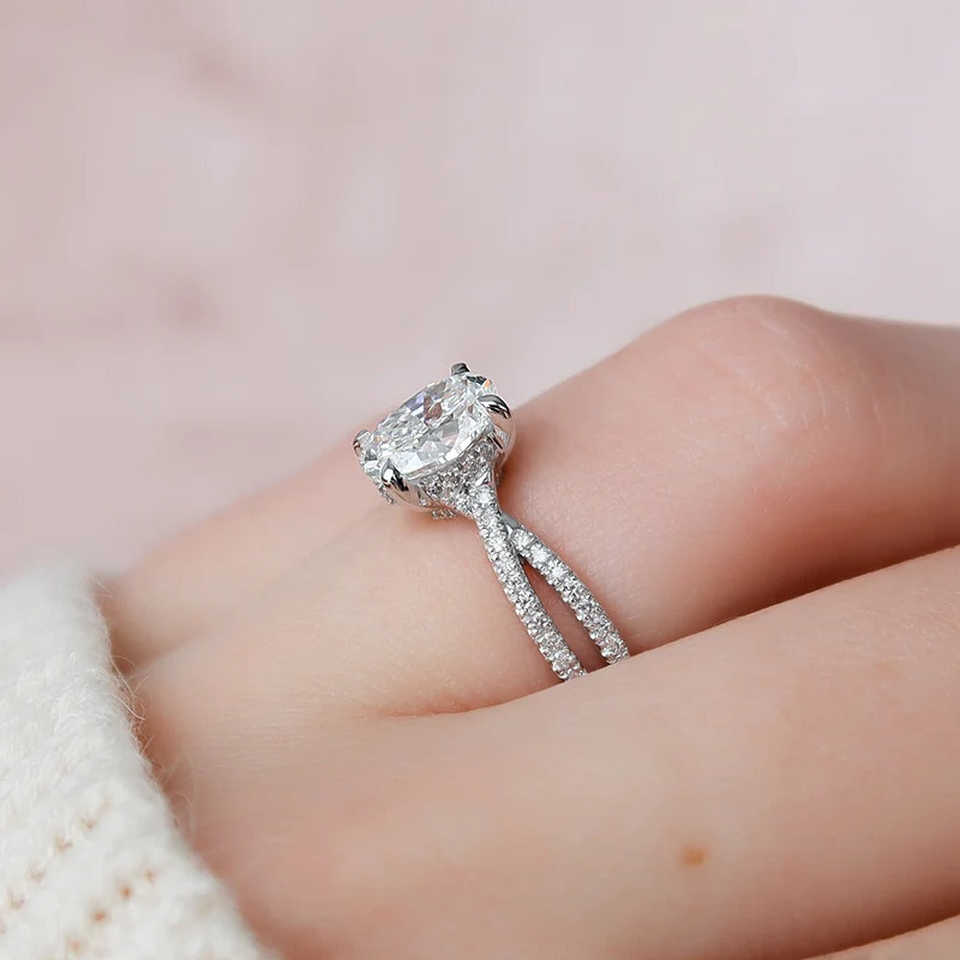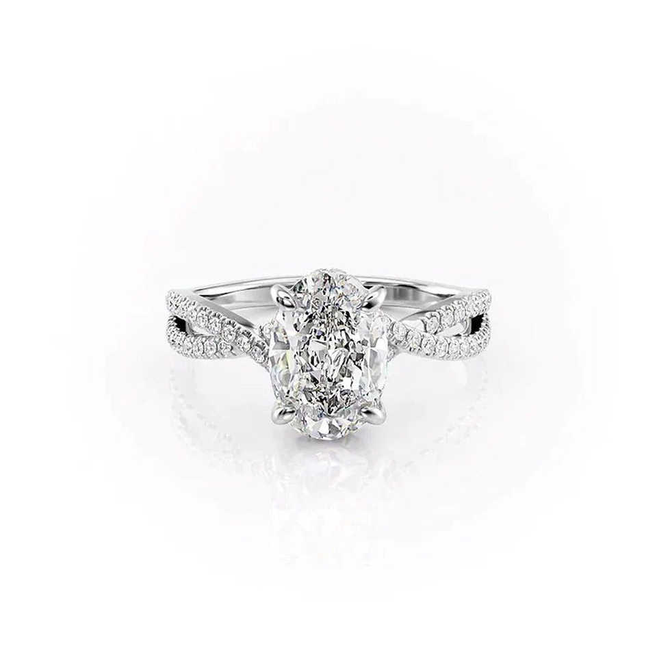 Bague de fiançailles en argent 925 élégante et unique avec moissanite taille ovale et accent caché, bijou élégant