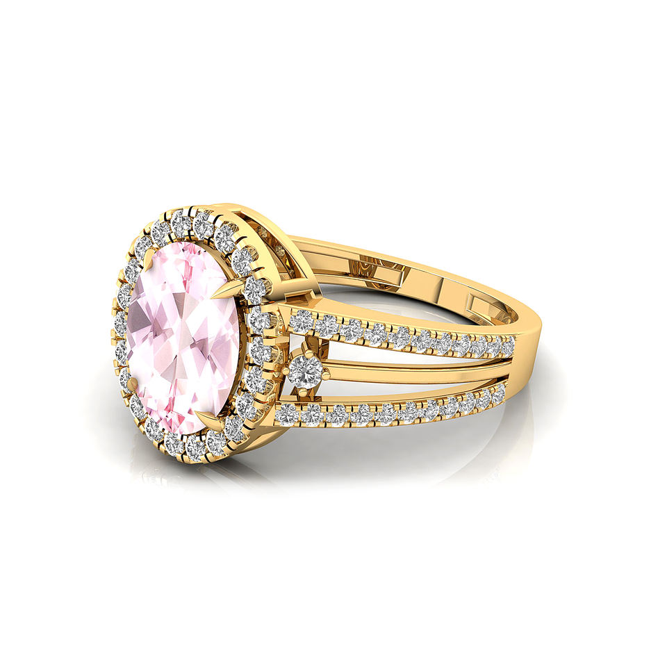 Bagues de fiançailles en morganite naturelle de coupe ovale 14k bague de mariée en or véritable grappe Solitaire diamant naturel femmes bagues d'anniversaire