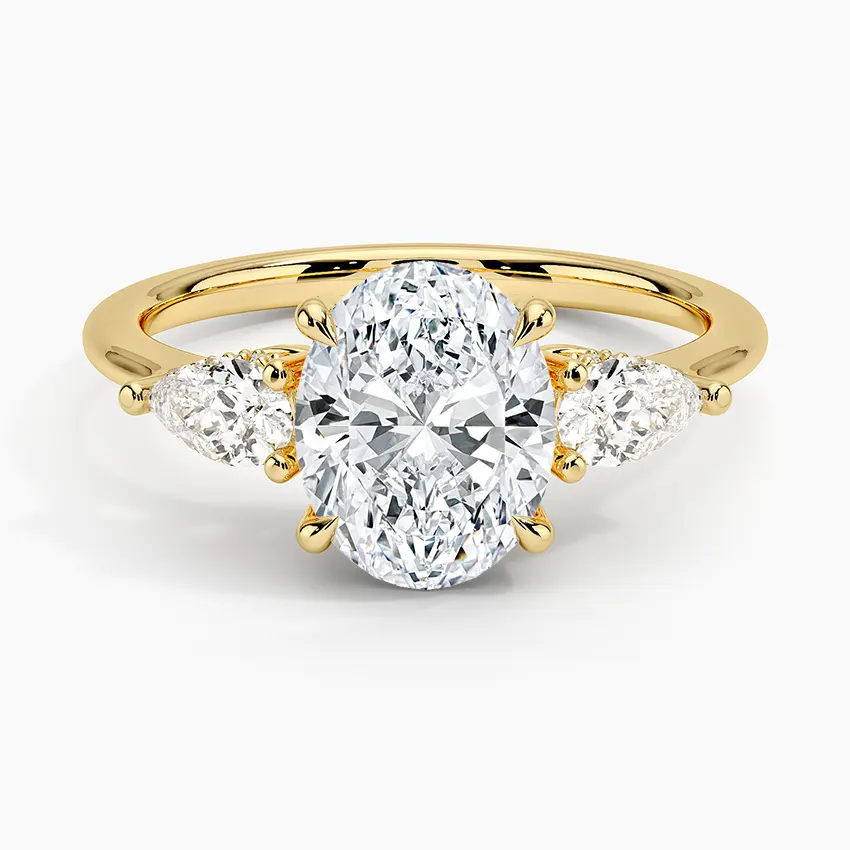 Bague de fiançailles ovale en diamant à trois pierres avec un design unique pour les fiançailles