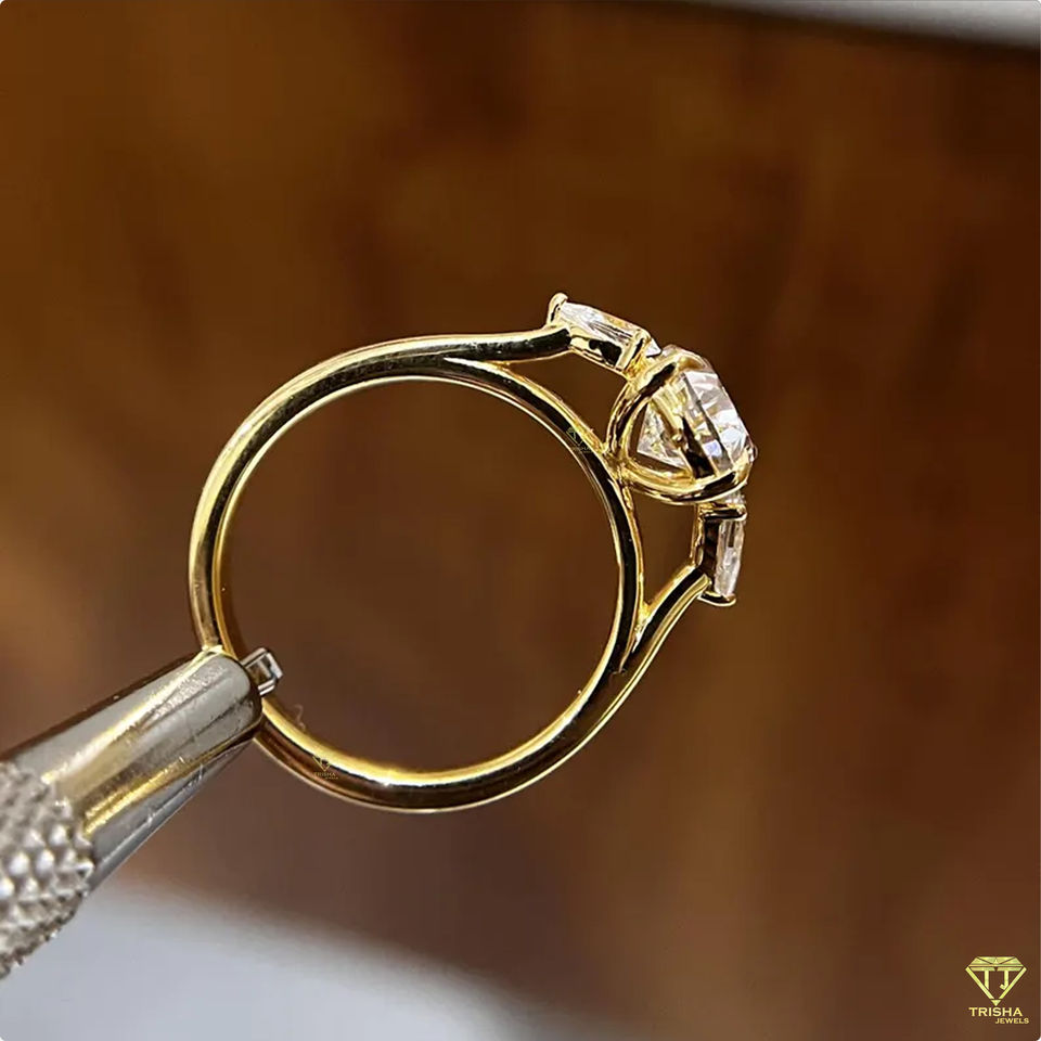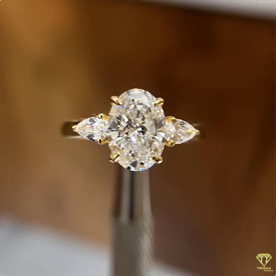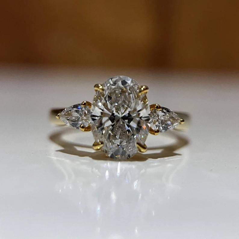 Bague de fiançailles à trois pierres de coupe ovale diamant cultivé en laboratoire avec des pierres latérales de poire plaqué rhodium bague de trilogie de mariée sertissage de griffes