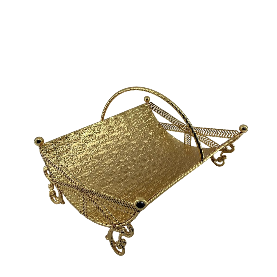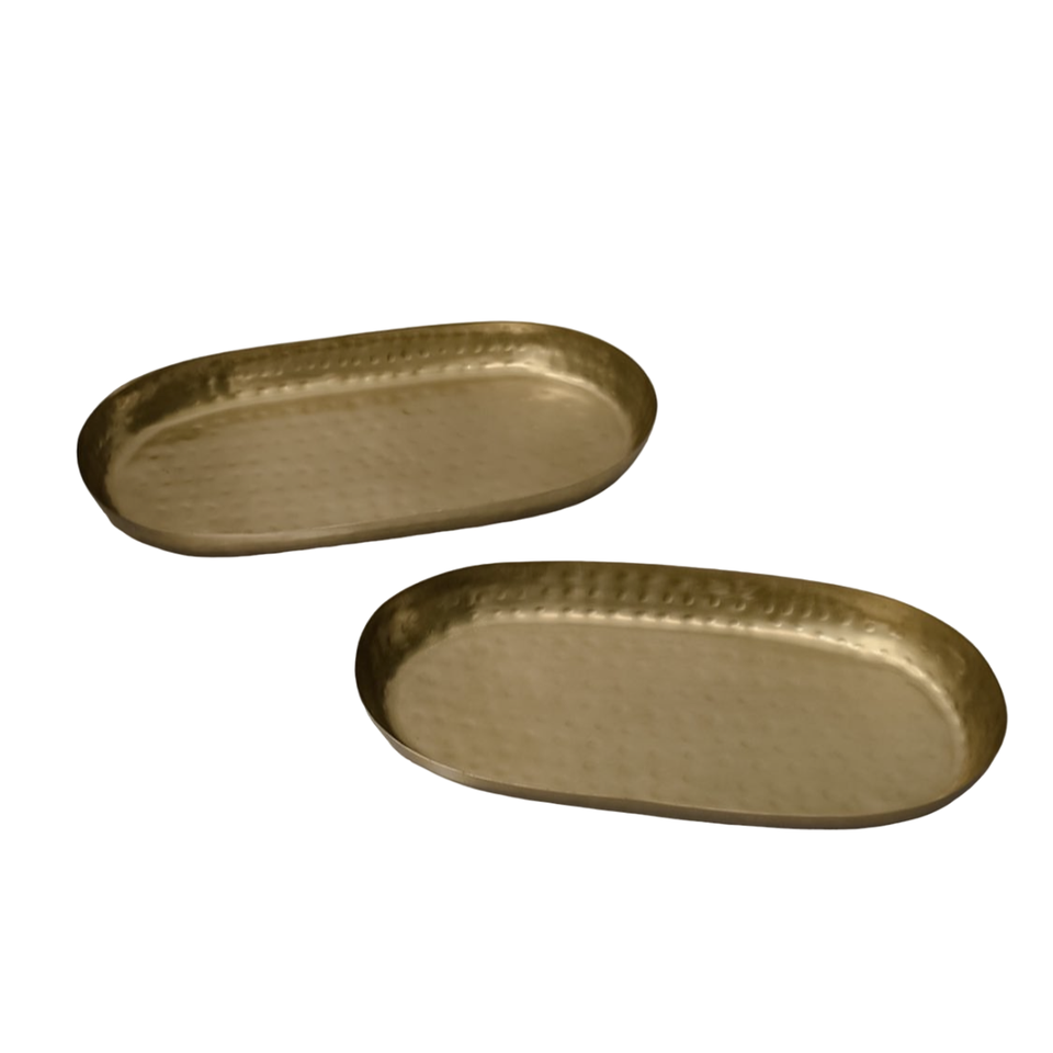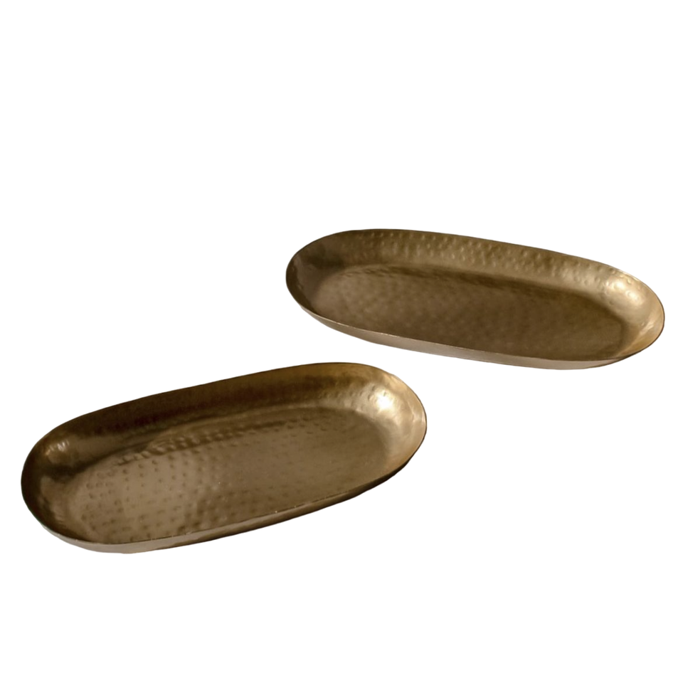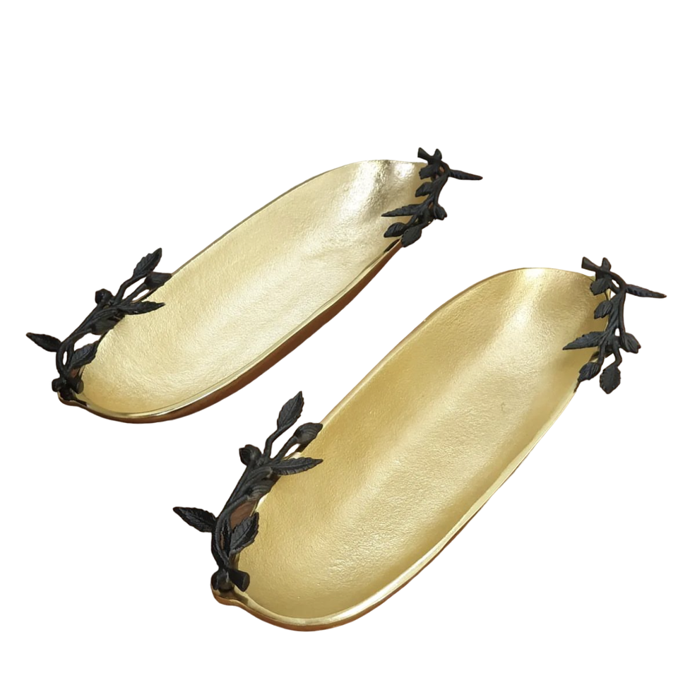 Plateau de service ovale en métal personnalisable pour la restauration, design feuille d'or, poignée noire, vaisselle de table