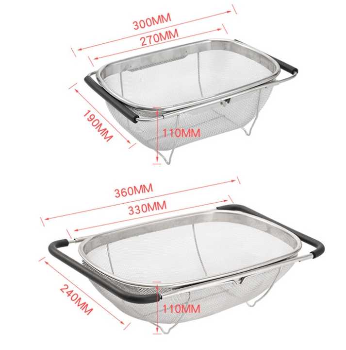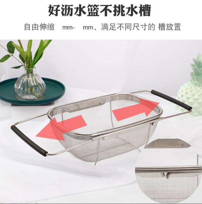 Passoire de cuisine ovale avec poignée rétractable en acier inoxydable pour le lavage et la vidange des légumes