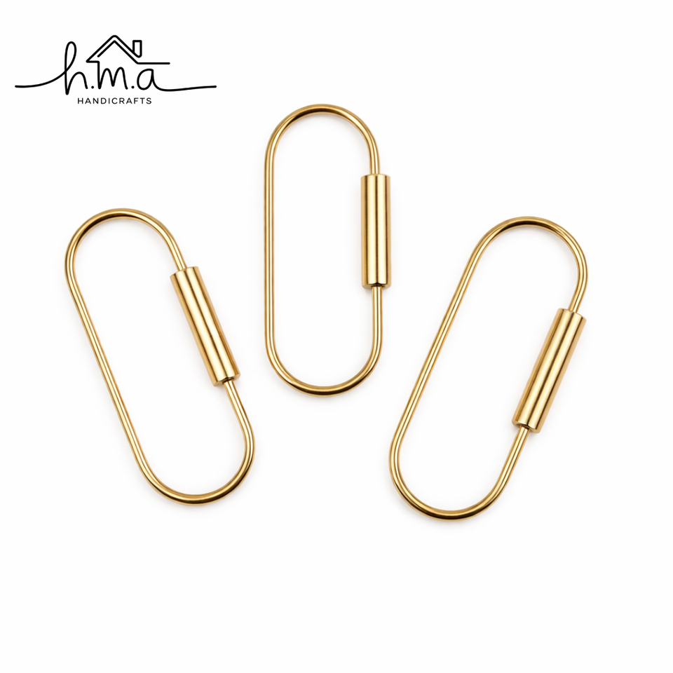 Porte-clés ovale en laiton finition dorée avec mousqueton à ressort écologique pour sacs et bagages
