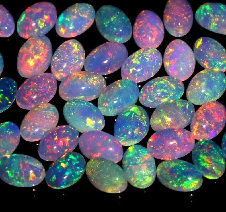 Cabochon d'opale ovale, cabochon de pierres précieuses multi opale de feu AAA, cabines d'opale calibrées en pierre lâche d'opale éthiopienne naturelle