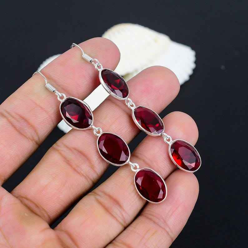 Keyword:Red Garnet 925 Made Sliver Earrings Red Garnet Stones