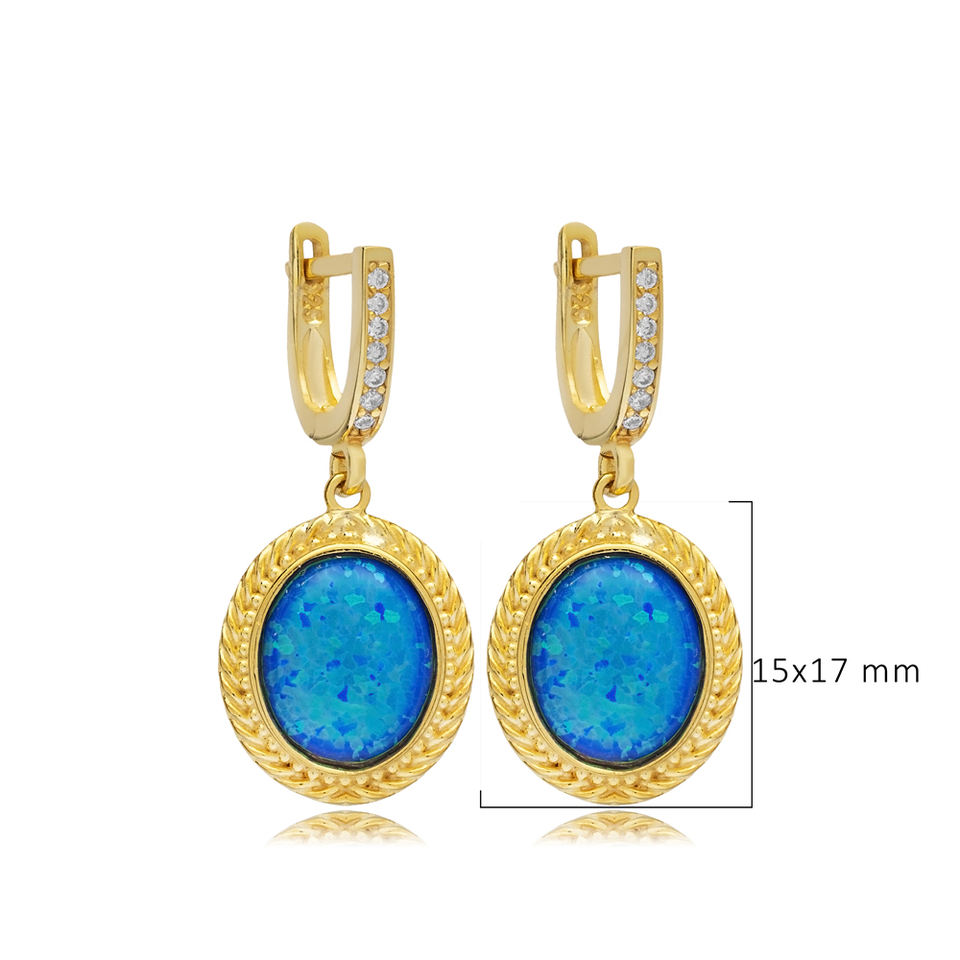 Forme ovale bleu opale charme balancent boucle d'oreille en gros turc fabriqué à la main 925 en argent Sterling bijoux fins pour les femmes