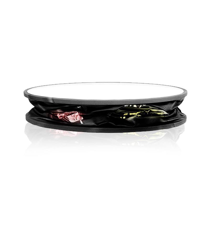 Oval Shape Exhibition Booth Led Light Tension Fabric Advertising Display Auto Shrink Pop up Display Table Counter