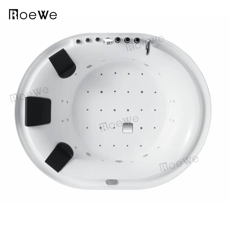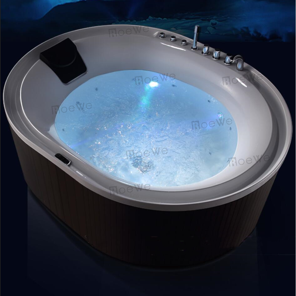 Baignoire Spa Autoportante de Forme Ovale, 2m de Longueur, Jacuzzi, Baignoires à Remous, Jupe en Bois, Baignoire en Acrylique Jazzy avec Massage à l'Eau