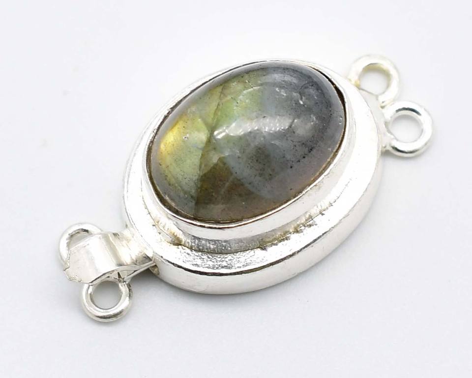Prem Bhaya Forme ovale 23X11X10MM Plaqué argent et or 18 carats Pierre précieuse Labradorite Fermoir boîte B618-Labradorite 1 2 brins