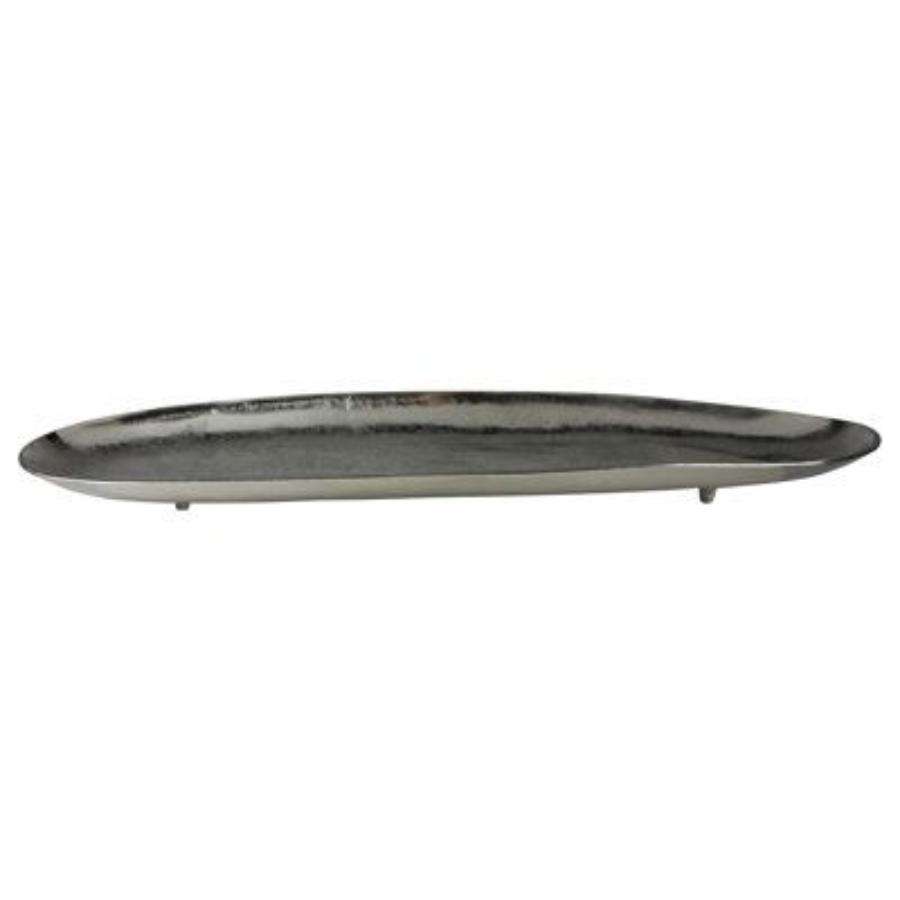 Plateau de service ovale en métal, acier inoxydable nickelé, effet miroir