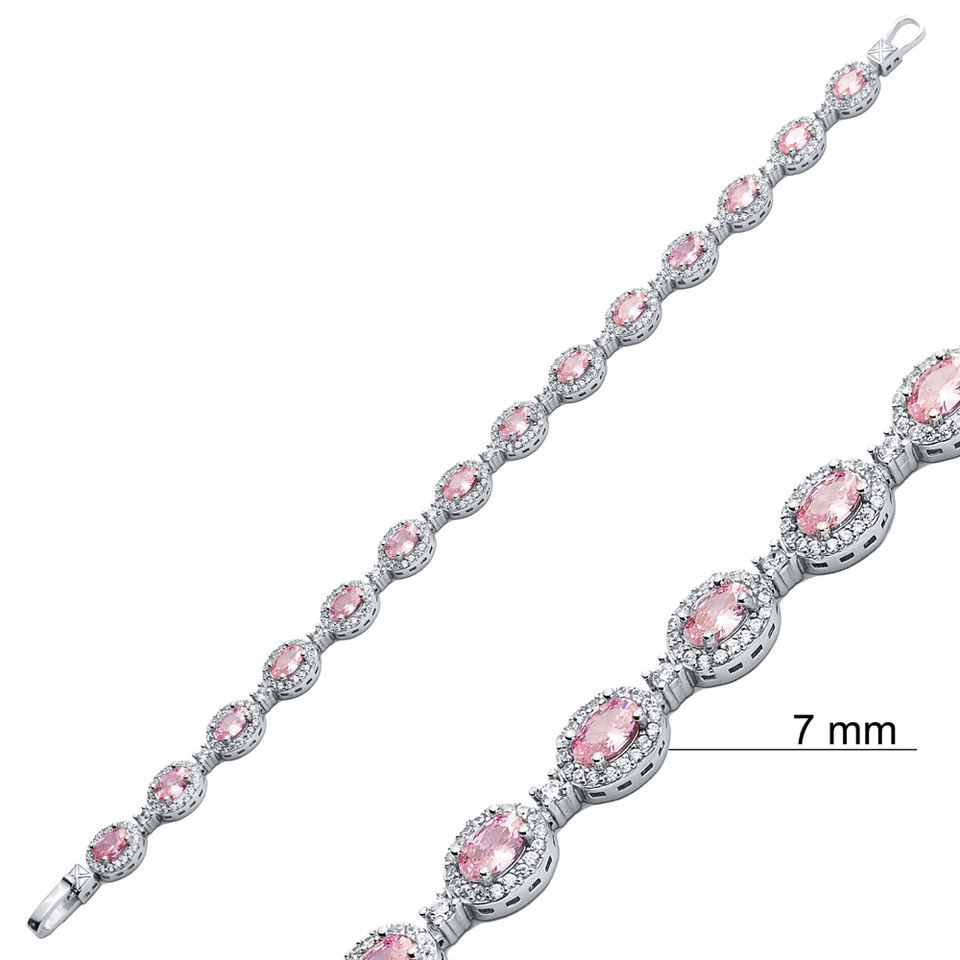 Forme Ovale Rose Quartz CZ Pierre Tennis Bracelet En Gros À La Main Turc 925 Bijoux En Argent Sterling