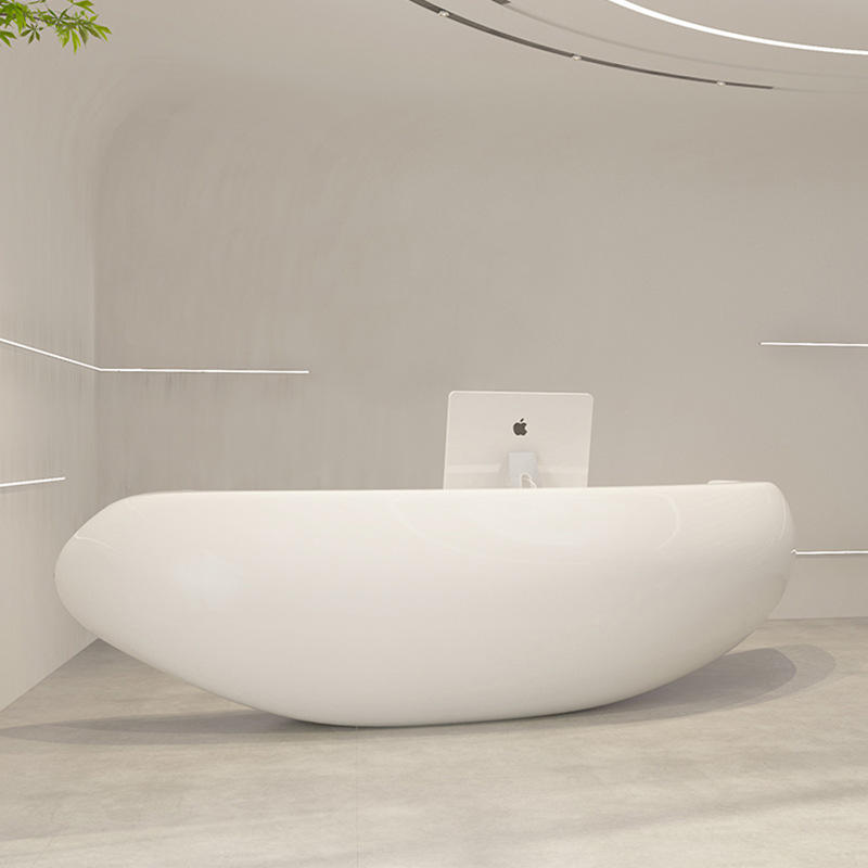Forme ovale bureau de réception blanc salon de beauté moderne bureau de réception peinture de cuisson brillant entreprise théâtre hôtel comptoir de réception