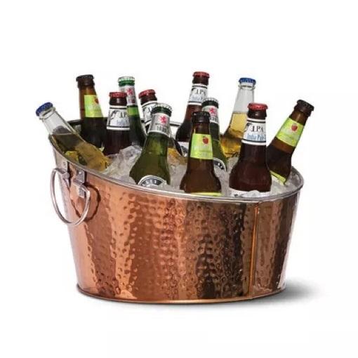 Oval Shaped Metal Stainless Steel Beverage Chiller Tub With Ring Handle Wine Champagne Metal Stainless Steel Wine Cooler Tub