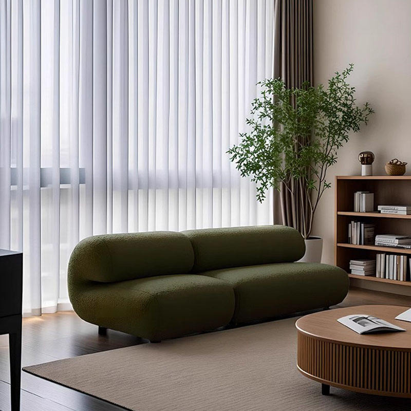 Canapé droit ovale en tissu floqué rembourré avec rembourrage en mousse pour salon