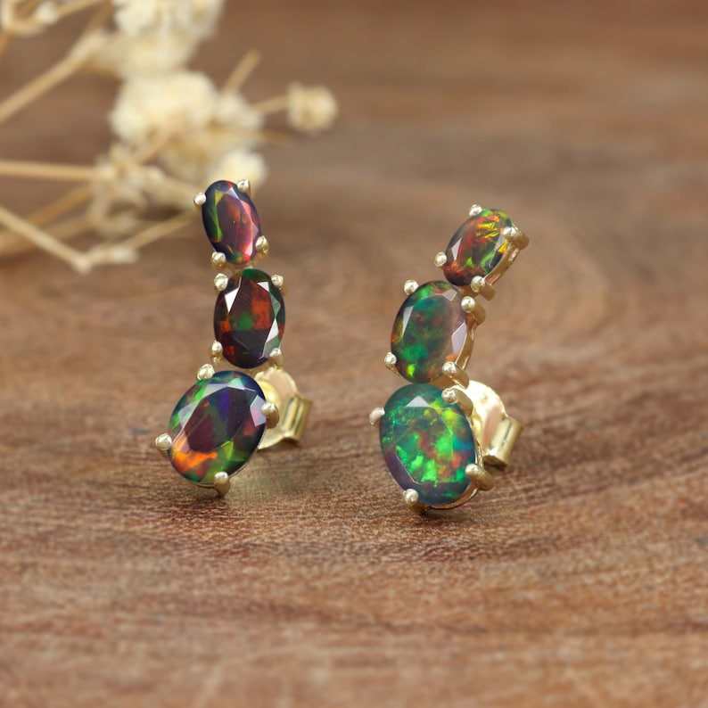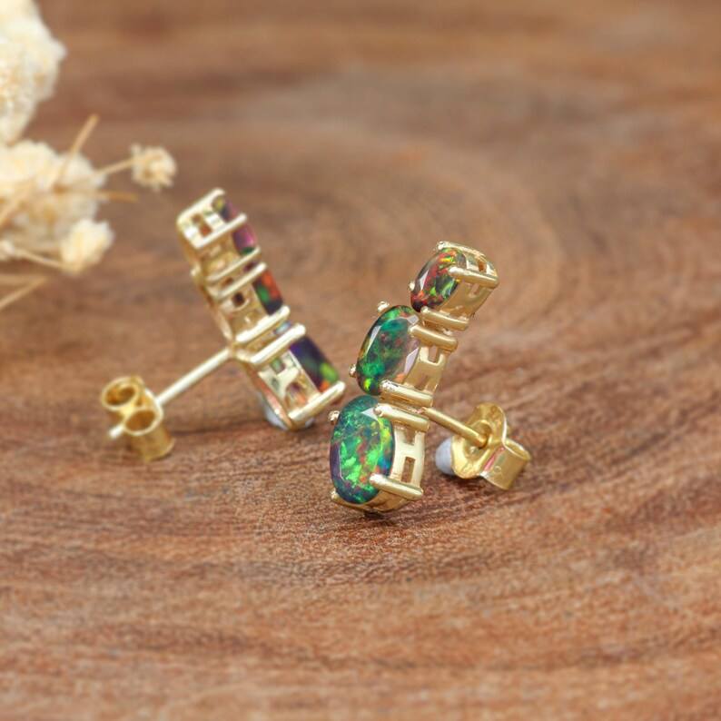 Keyword:Fire Ethiopian Opal Stud Earrings Sparkling multi fire Stones