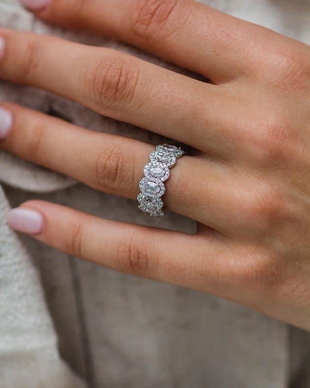 Ovale avec minuscule coupe ronde 14KT or blanc massif laboratoire cultivé diamant alliance bijoux fins pour les femmes