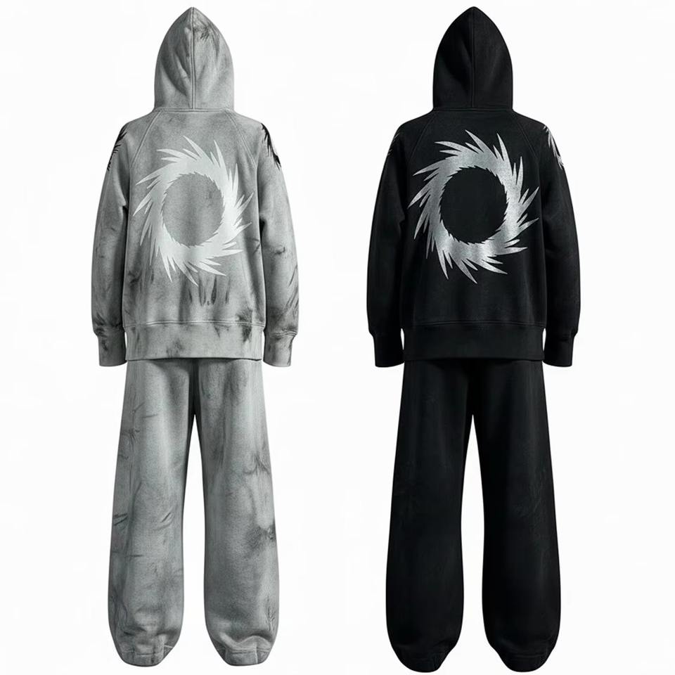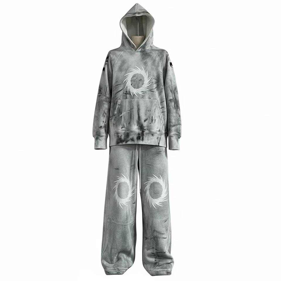 Ensemble sweat-shirt et jogging surdimensionné avec broderie délavée au soleil, décontracté, 100% coton molletonné, motif de survêtement unisexe