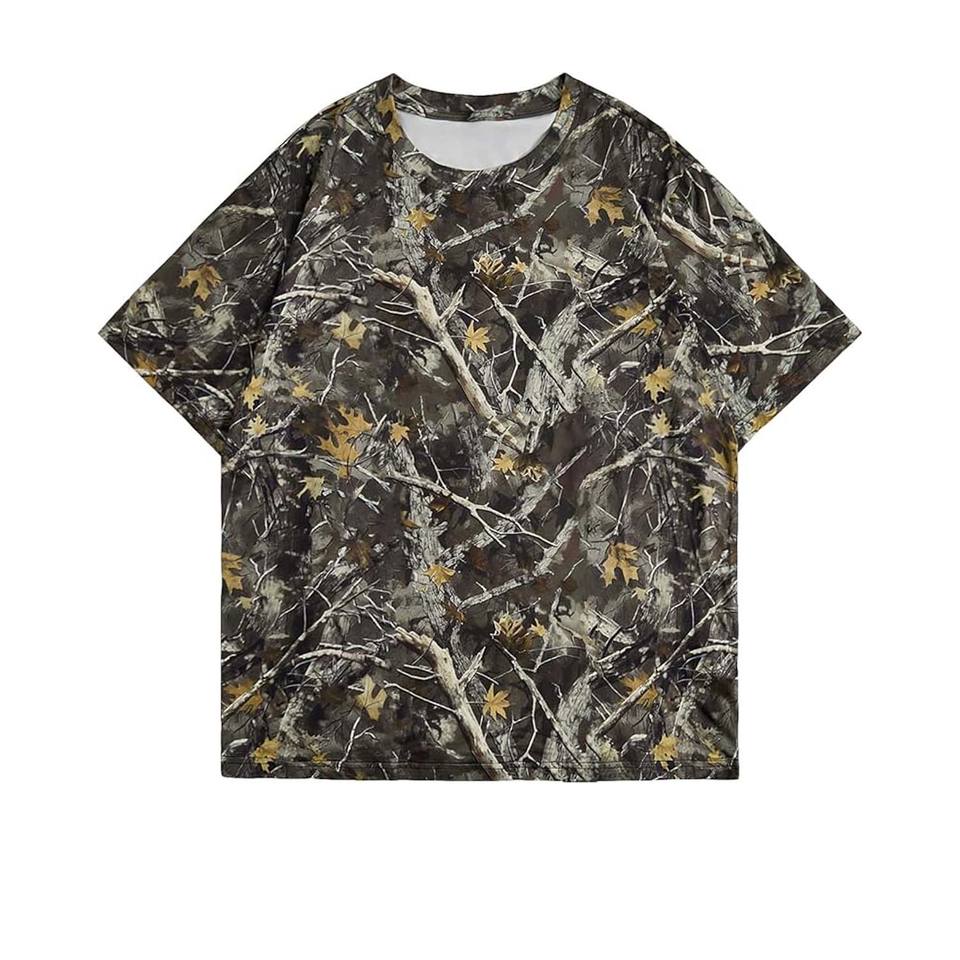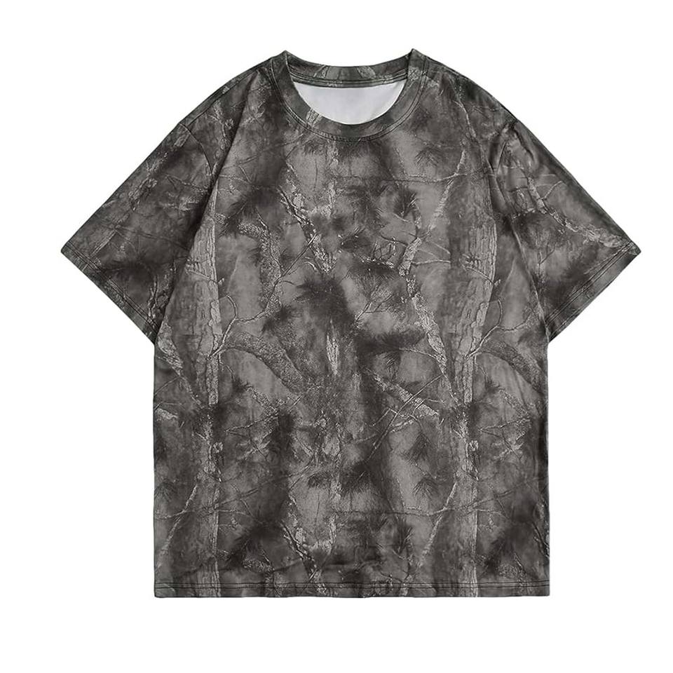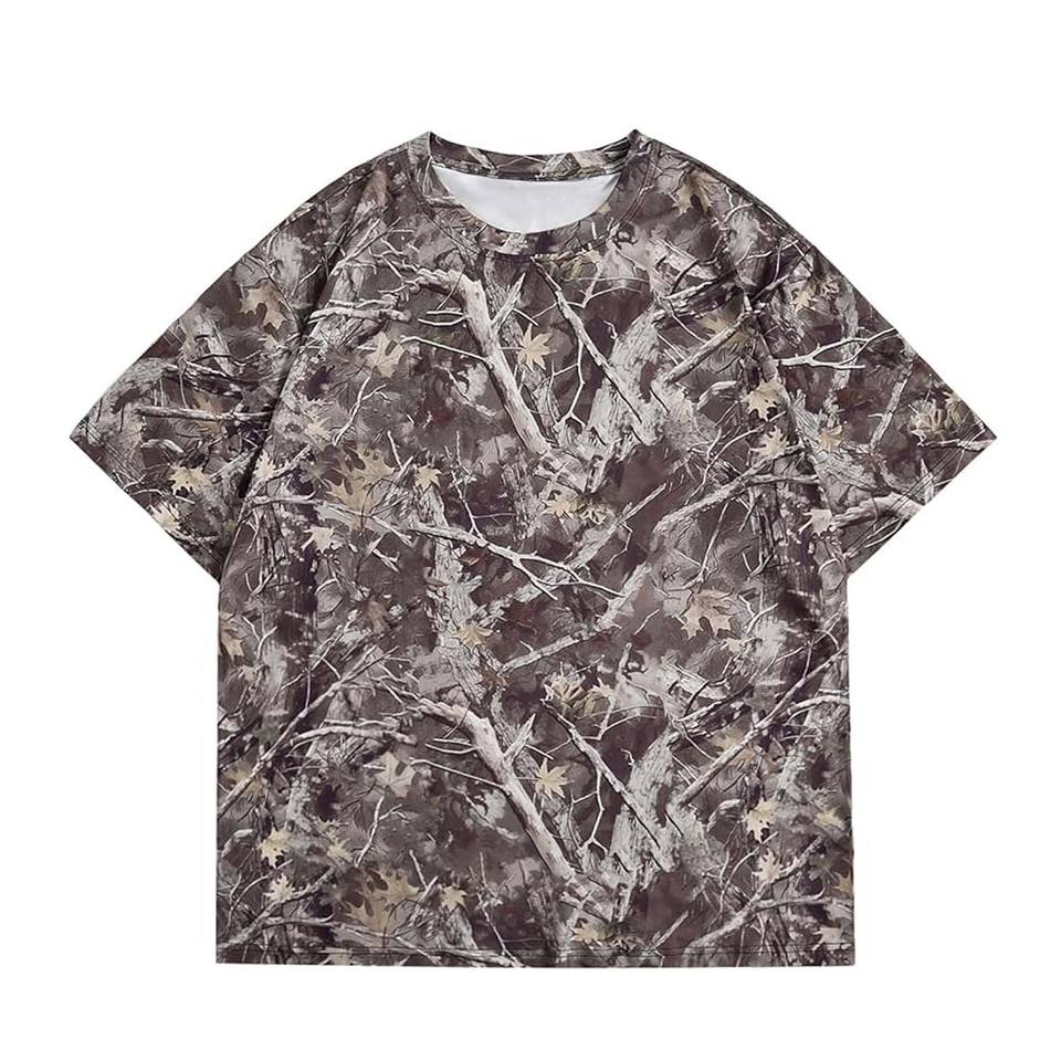 T-shirt ample à motif camouflage et imprimé arbre, design de haute qualité, personnalisable, respirant, pour adultes, OEM.