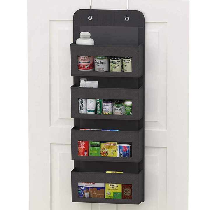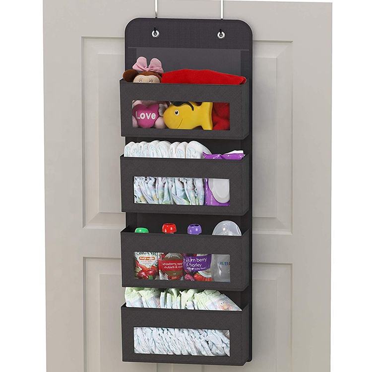 Sac de rangement organisateur mural suspendu noir au-dessus de la porte avec 4 poches de fenêtre transparentes