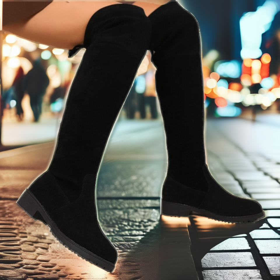 Bottes en daim à bout pointu au-dessus du genou, grande taille, automne/hiver 2025, nouvelle collection, couleur unie, mode féminine, chaussures à talon épais