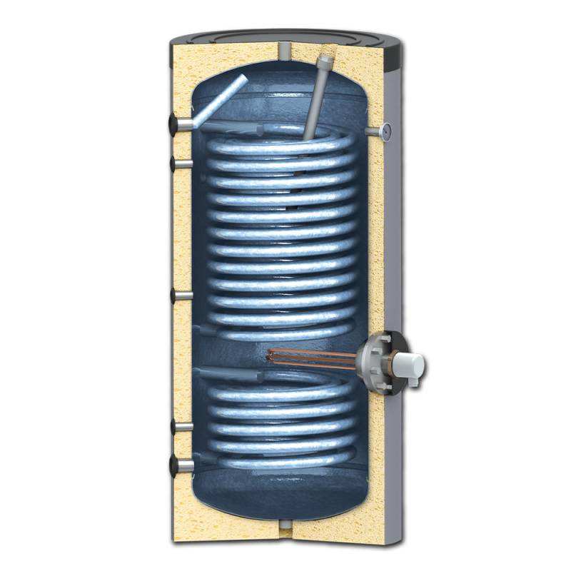 Chauffe-eau électrique OverSolar en acier inoxydable de 500 litres pour pompe à chaleur à double serpentin, production d'eau chaude sanitaire haute efficacité