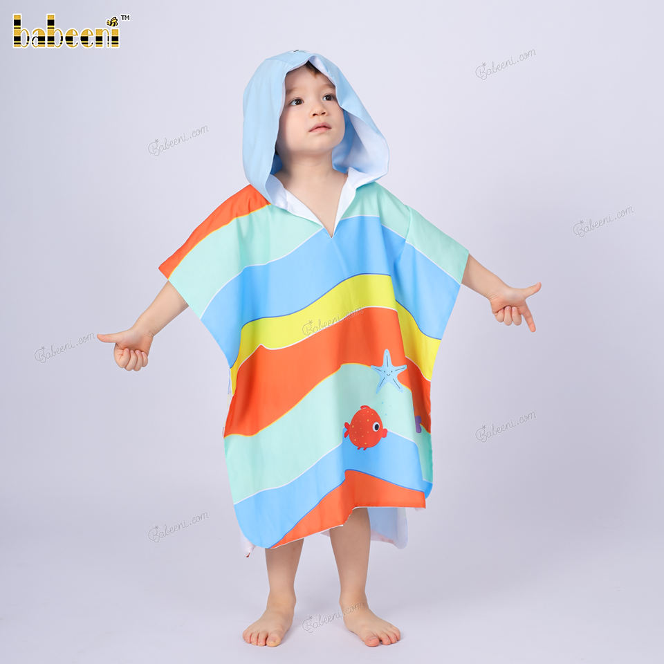 Pardessus pour garçon printemps-été avec de nombreux motifs de vagues colorées et 2 poissons et étoiles de mer brodés à la main-BC1310