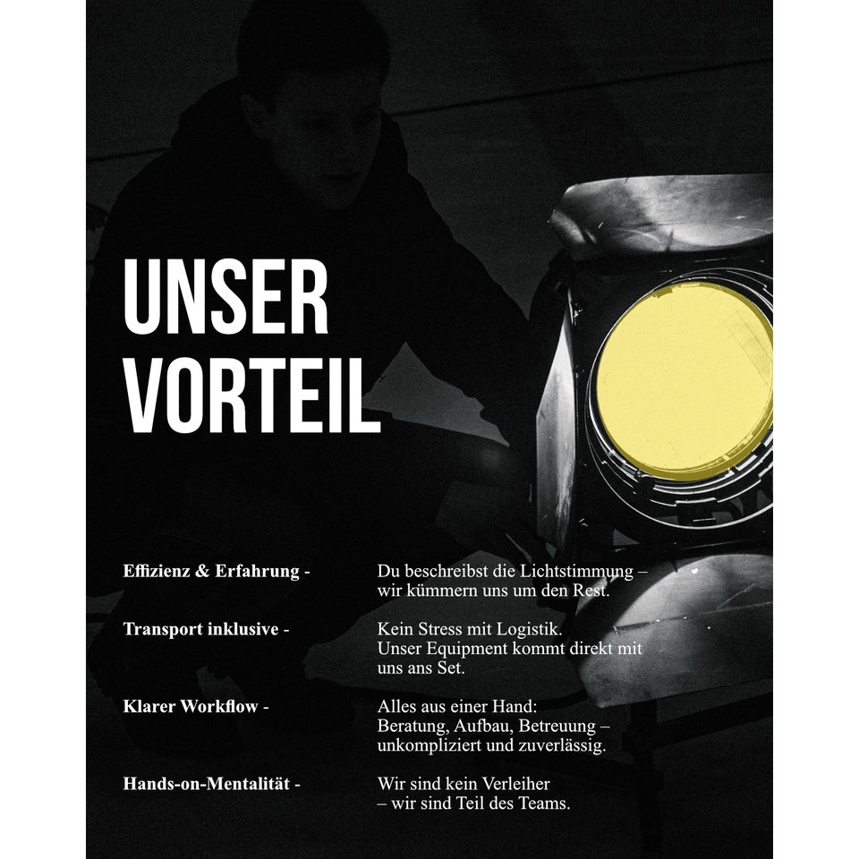 Service d'éclairage cinématographique avec éclairage supérieur, paquets d'éclairage, technologie et transport pour des productio
