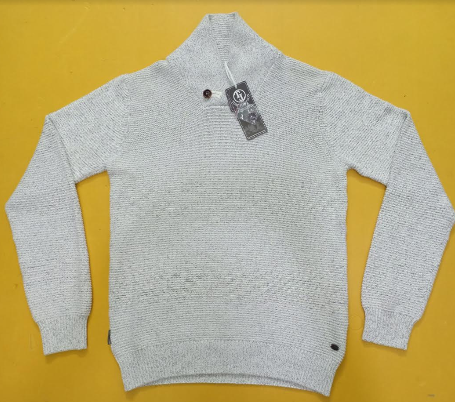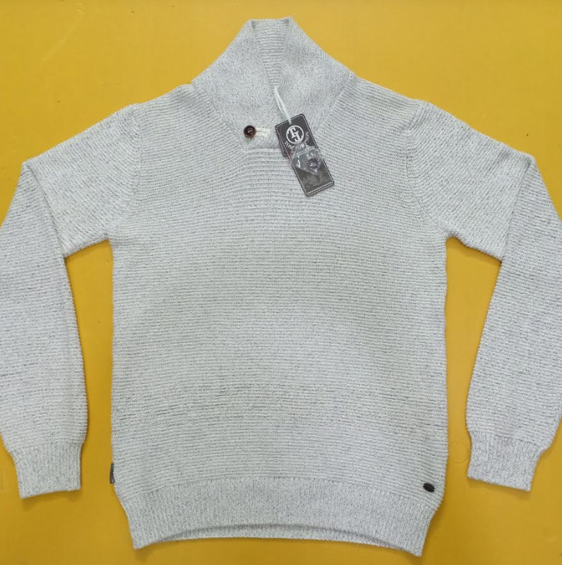 Pull en maille décontracté pour homme à col châle et manches longues, en coton, avec étiquettes de marque originales, surplus du Bangladesh
