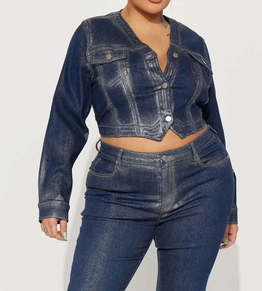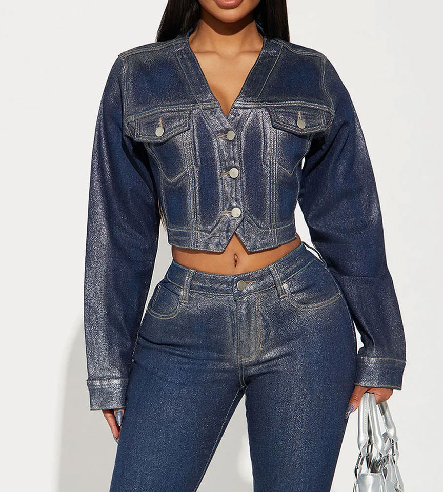 Veste en jean boutonnée oversize en coton pour femme, haut court à manches longues, tendance, service OEM, prix bas, OEM