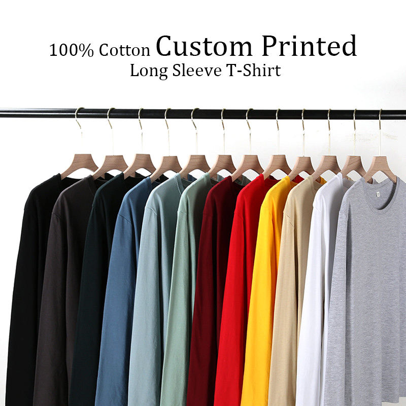 T-shirt à manches longues oversize unisexe 100% coton couleur unie impression personnalisée