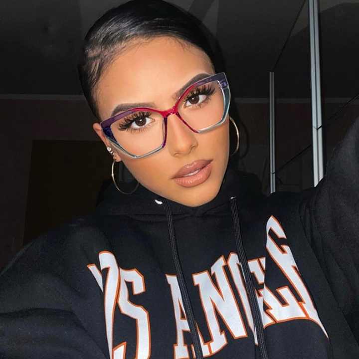 Lunettes oversize yeux de chat TR90 CP carrées grande Protection des yeux épissage couleur printemps pied Anti-lumière bleue
