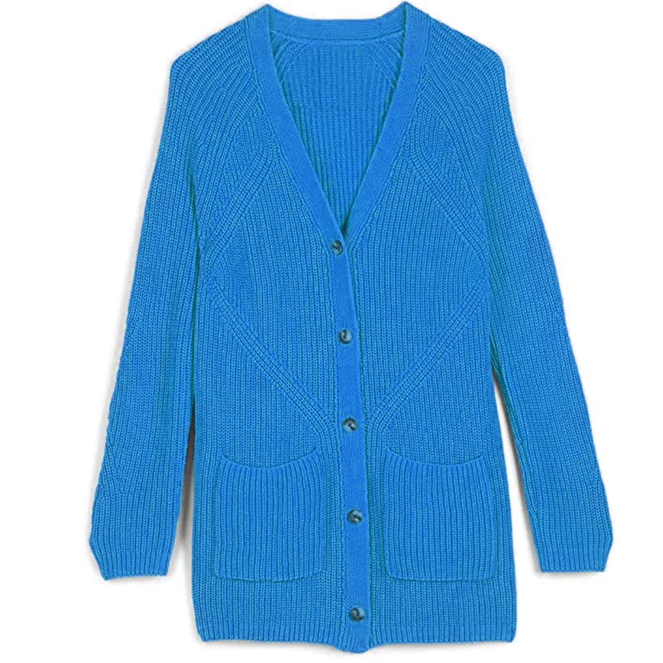 Cardigan oversize en laine/acrylique tricoté sur mesure, col en V, patchwork, décontracté, printemps, appliques, broderie, décoration boutonnée, université