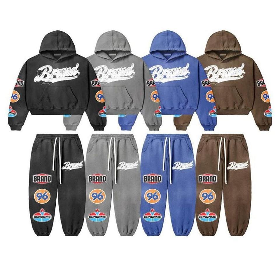 Survêtement pour homme en coton 100% surdimensionné, design décontracté et lourd, avec un style streetwear délavé au soleil et broderie personnalisée pour l'hiver
