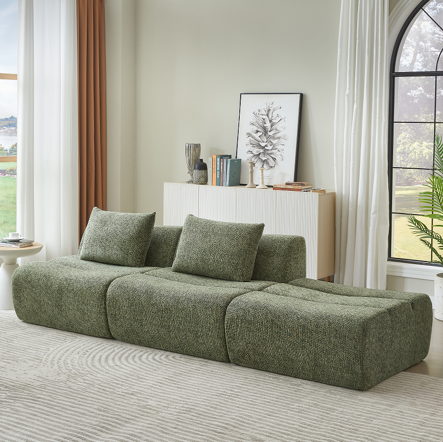 Oversized 3 Seater Convertible Sofa Set with Chenille Fabric No Assembly Space-Saving Apartment Sofa Bed for Living Room