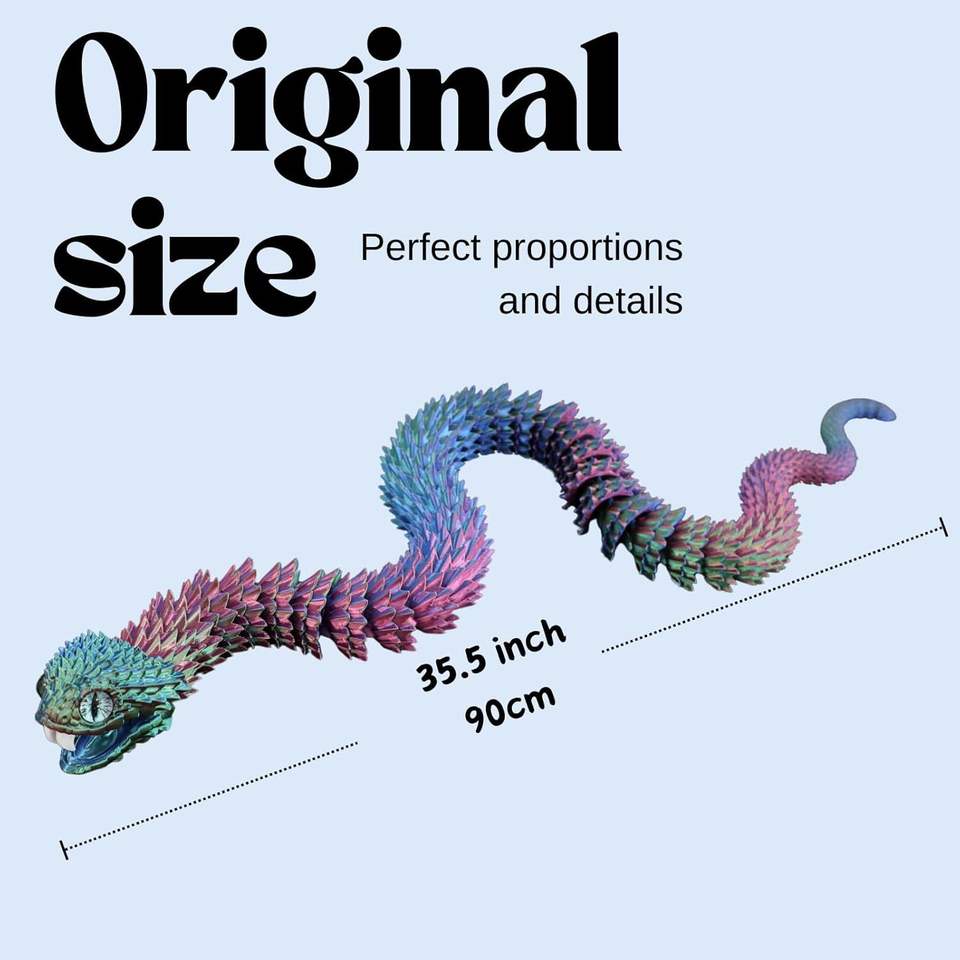 Modèle de serpent magique surdimensionné de 35,5 pouces imprimé en 3D avec des dents mobiles et des articulations flexibles, cadeau surprenant pour soulager le stress