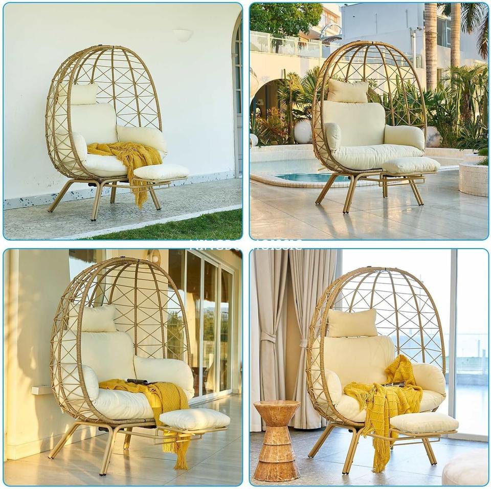 Fauteuil suspendu moderne de style bohème surdimensionné, capacité de 450 lb, cadre en fer, coussin, repose-pieds, utilisation intérieure et extérieure, mobilier d'extérieur
