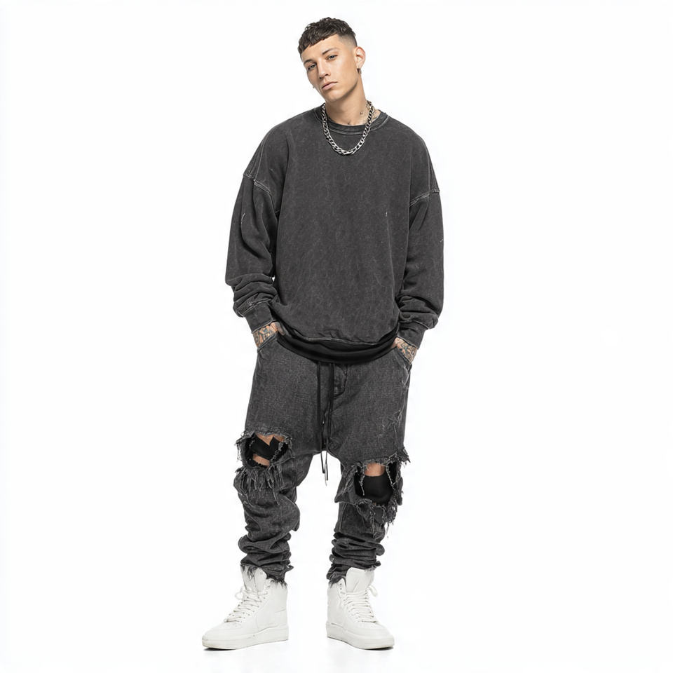 Ensemble sweat-shirt délavé et pantalon de survêtement oversize