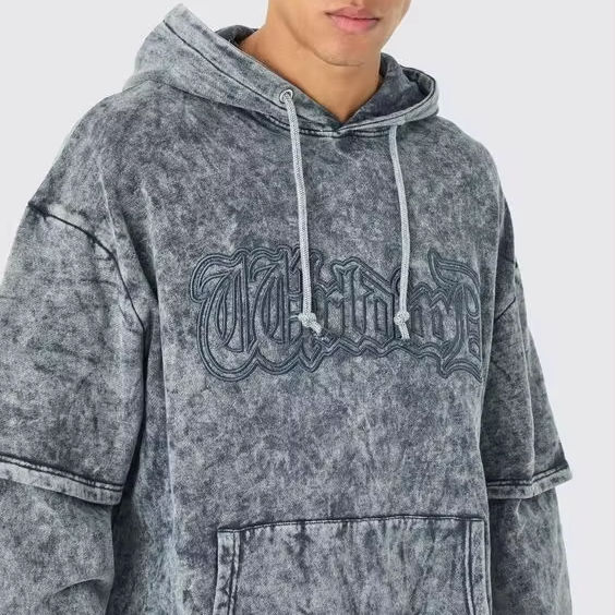 Sweat à capuche brodé surdimensionné délavé à l'acide Boxy Fit Winter Worldwide Hooded