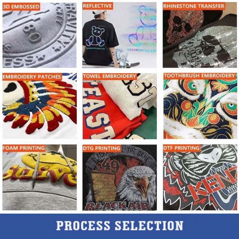 impression de décharge, Tie-dye, Impression Puff, EMBOSSÉ, Impression de Chaleur-transfert, Impression numérique, IMPRESSION D'ÉCRAN DE SOIE, Impression à transfert de chaleur par injection directe de vêtements prêts à l'emploi, Impression numérique directe de vêtements prêts à l'emploi, DRIPPING, Imprimé en caoutchouc surélevé, Impression de transfert de Sublimation, Imprimé à paillettes, Imprimé en feuille, Imprimé lumineux, Impression de troupeau, Autre, Aucun, Impression à pigment, Impression de silicone, Impression de fissure, Watermark, Points de tatami, Impression d'encre, Impression laser, Impression HD, Impression réfléchissante, Impression Plastisol, Flexographie, Dessiné à la main