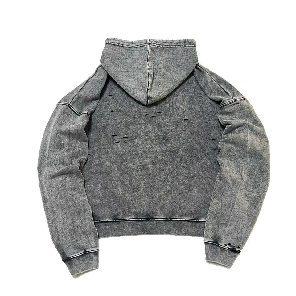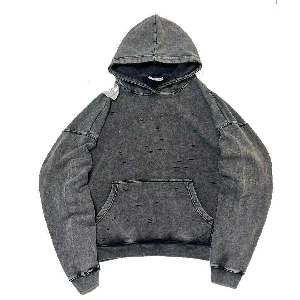 Sweat à capuche oversize déchiré pour homme – Respirant, basique, thermique, qualité supérieure, petit prix