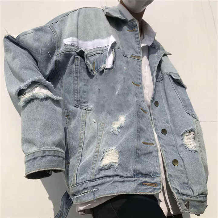 Veste de camionneur unisexe en denim tricoté surdimensionnée, effet vieilli et enduit, lavage vintage, coupe ample, 100% coton, respirante, séchage rapide, printemps