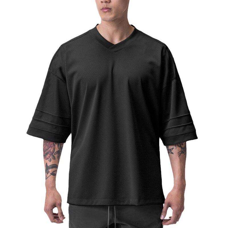T-shirt surdimensionné en coton T-shirt noir à demi-manches Col en V T-shirts surdimensionnés pour hommes