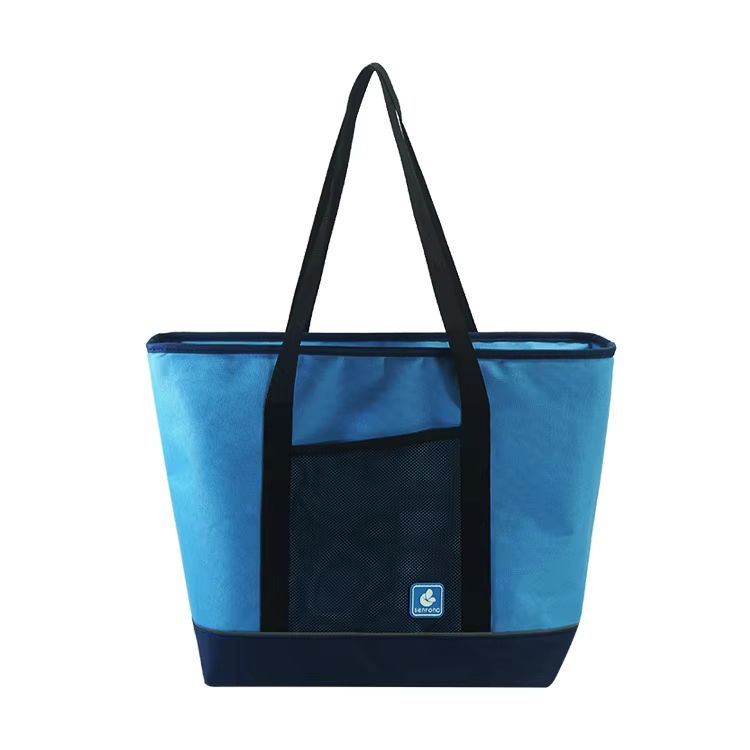 Grand sac de plage pliable personnalisé avec logo, isotherme et en maille, idéal pour l'été