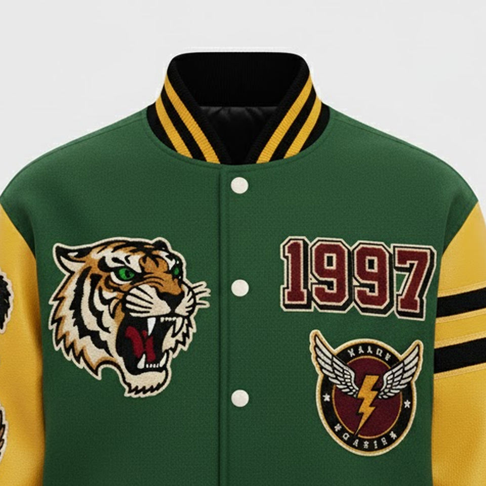 Nom du produit:Veste universitaire brodée en chenille pour homme