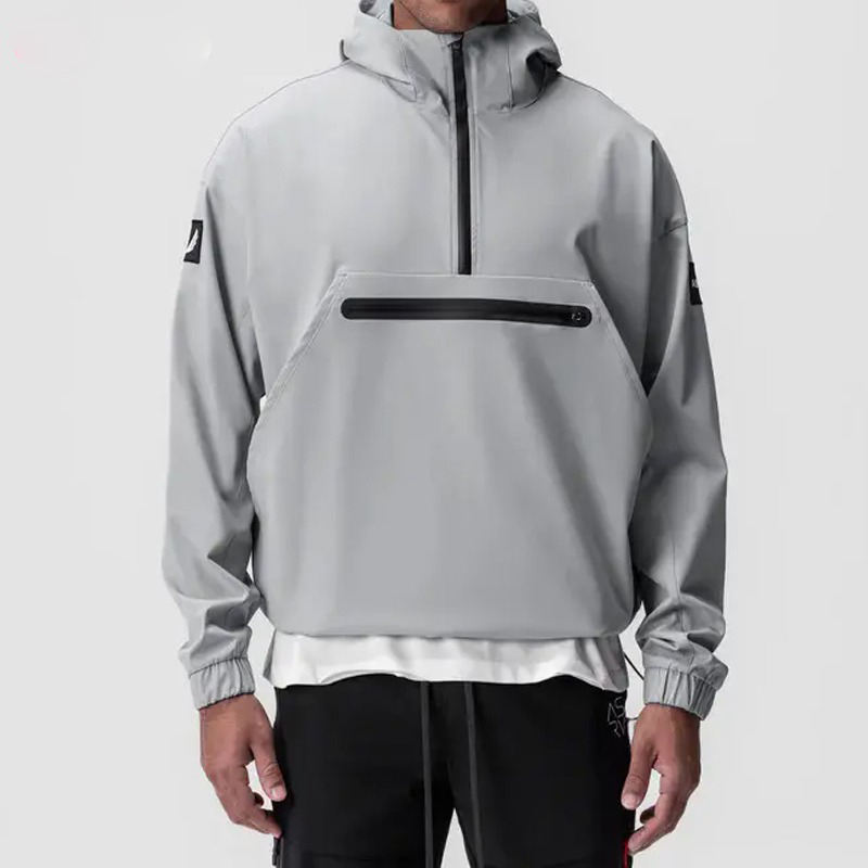 Veste courte unisexe légère et surdimensionnée Vêtements de travail décontractés imperméables pour la course à pied Vestes de frappe à capuche pour hommes