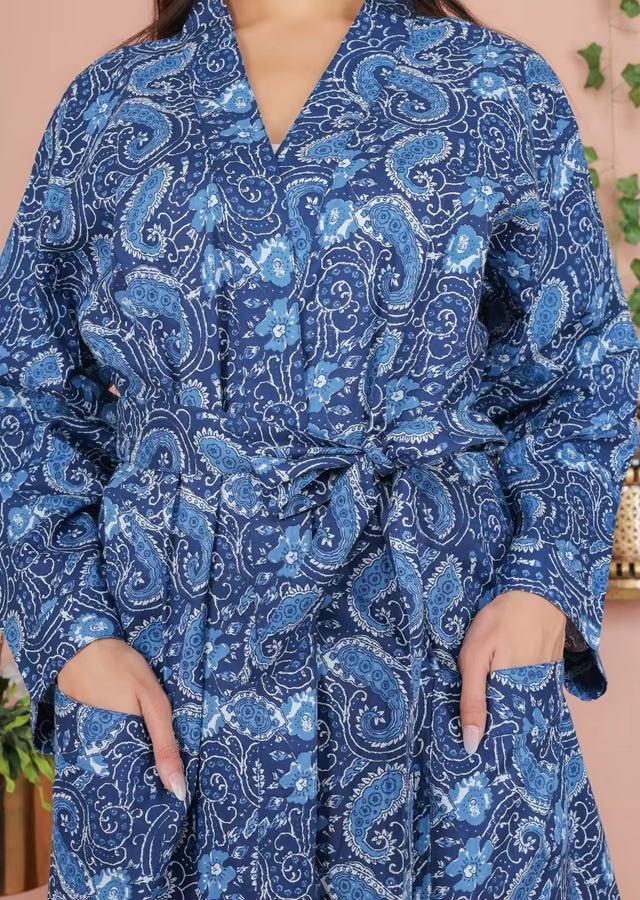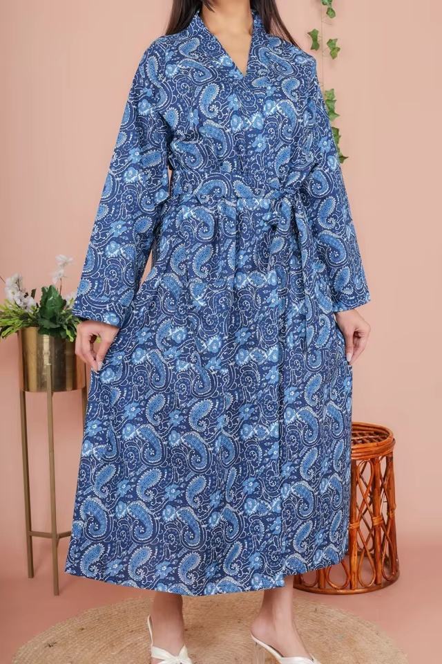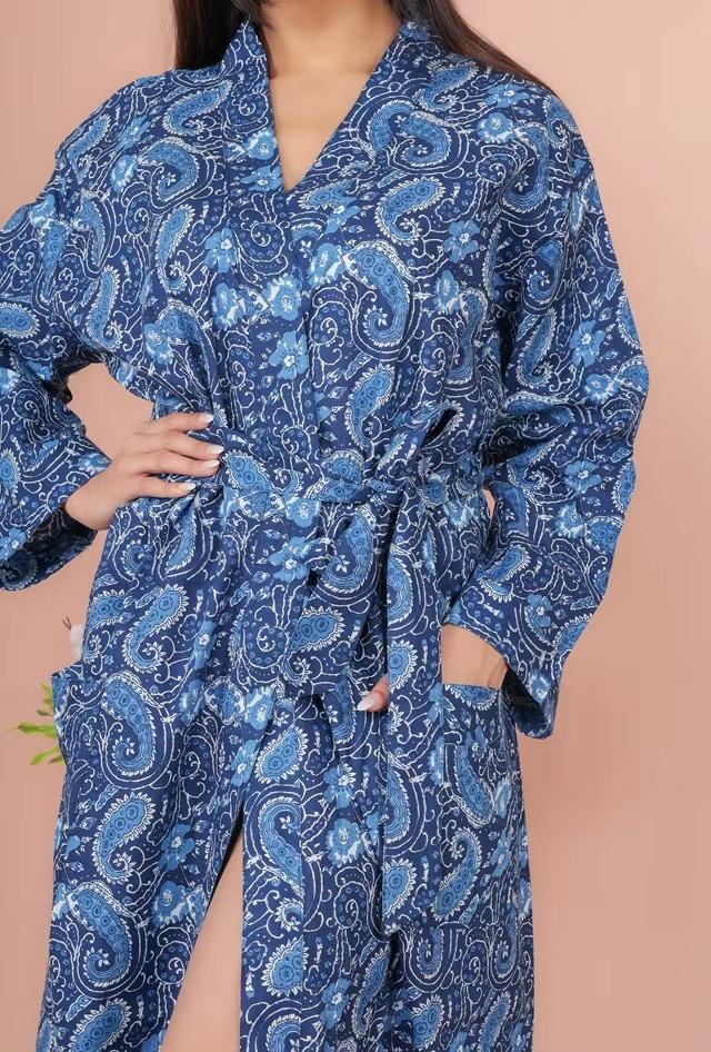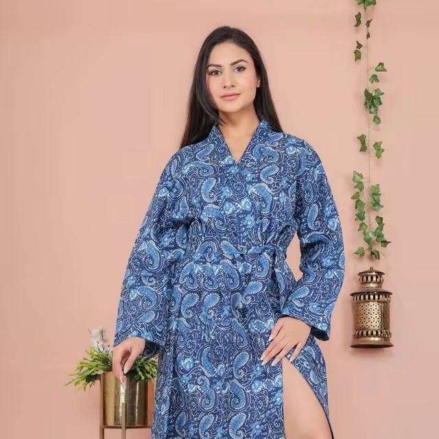 Nom du produit:Peignoir réversible en coton matelassé de haute qualité, style kimono à nouer.
