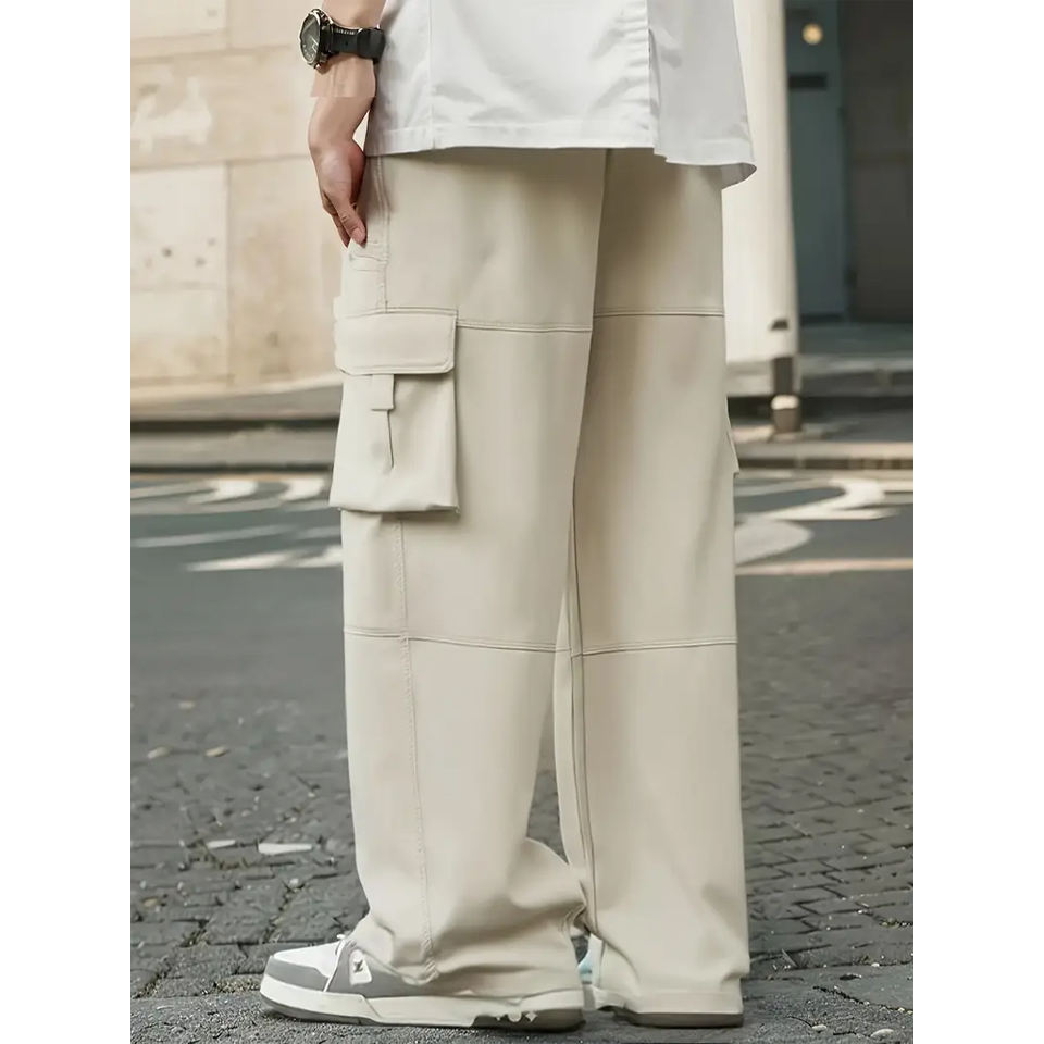 Pantalon de survêtement cargo oversize pour homme, style streetwear, coupe ample, en molleton de coton, multi-poches, personnalisable