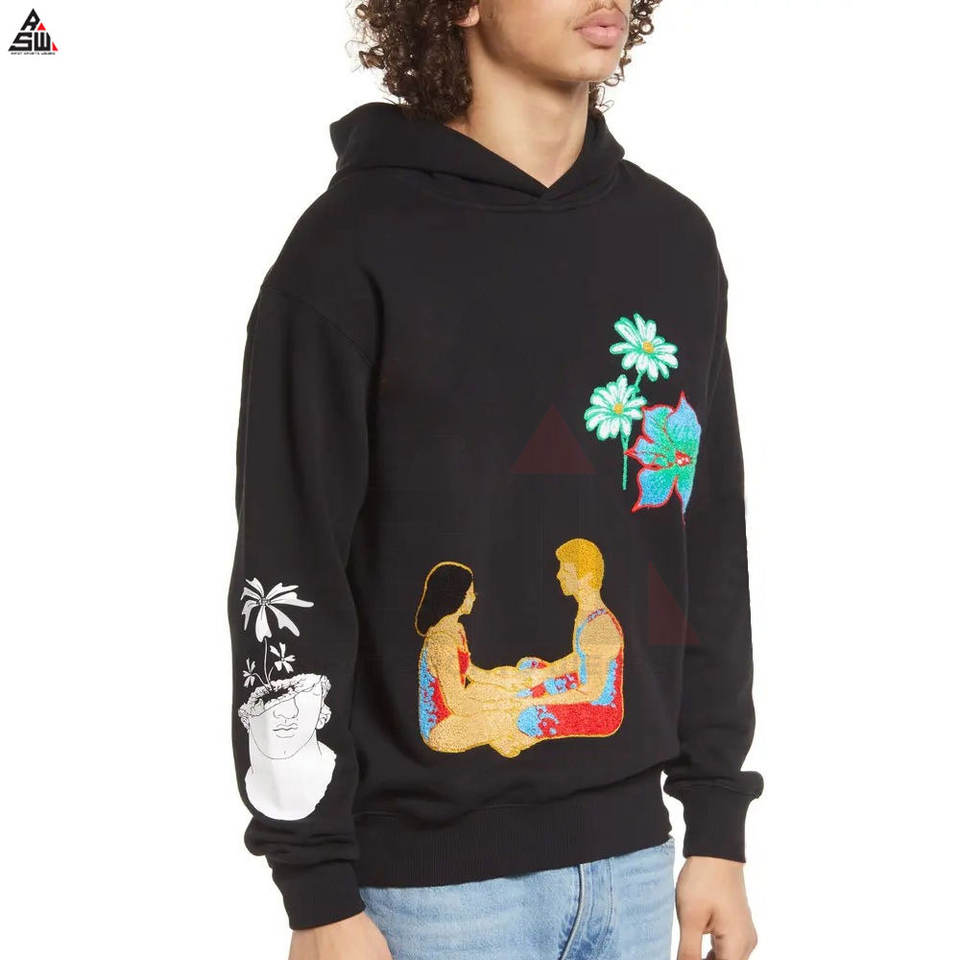 Pull à capuche surdimensionné en molleton de coton avec logo personnalisé brodé pour hommes, manches longues, respirant, prêt pour l'hiver