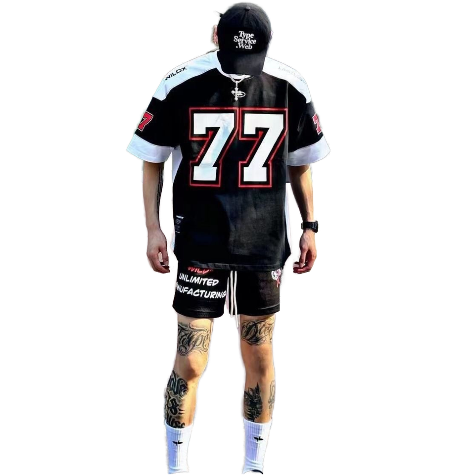 T-shirt à manches courtes et col en V surdimensionné pour homme, style jersey, 300 grammes, imprimé numérique de haute qualité, respirant, séchage rapide