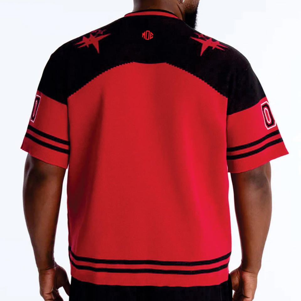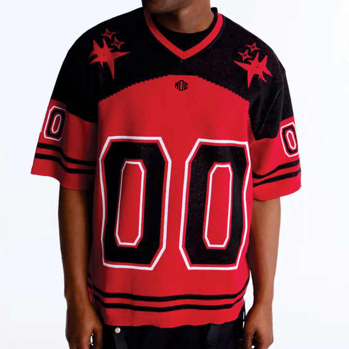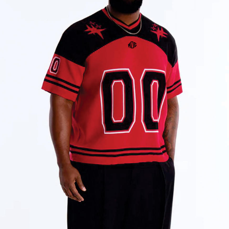 Maillot de football américain rouge surdimensionné pour homme, col en V avec empiècements contrastants, streetwear, haut de sport, numéro personnalisé, tenue d'équipe, fabricant OEM